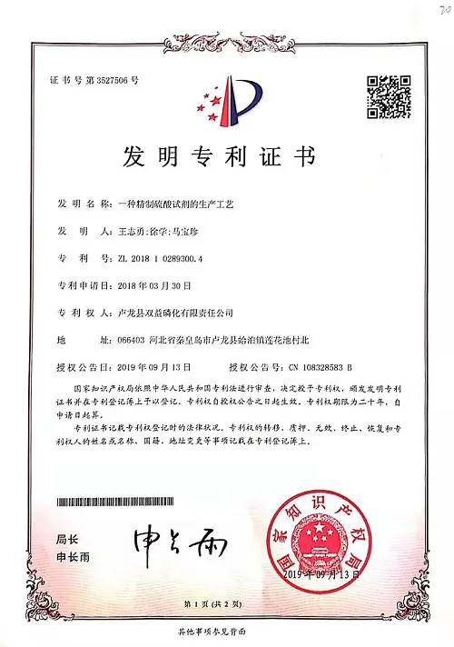 Le comté de Lulong Shuangyi Phosphorization Co., Ltd est situé dans la belle ville côtière de Qinhuangdao, l'usine couvre une superficie de 40 057. 8 mètres carrés, zone de construction de 10 343 mètres carrés, pour les entreprises nationales de haute technologie et les petites et petites sciences et technologies. entreprises de taille moyenne, est l'unité dirigeante de l'association de l'industrie de l'acide sulfurique de la province du Hebei, centre de recherche en technologie d'ingénierie des produits d'acide sulfurique de Qinhuangdao.